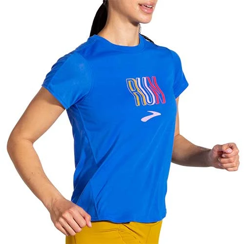 Super soft, quick-drying fabric plus bright style equals a performance running T-shirt that can carry you through the rest of your day.