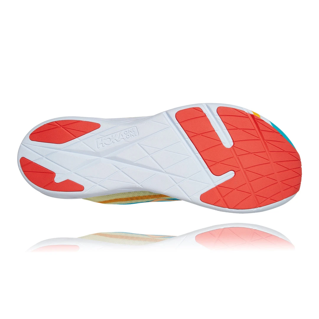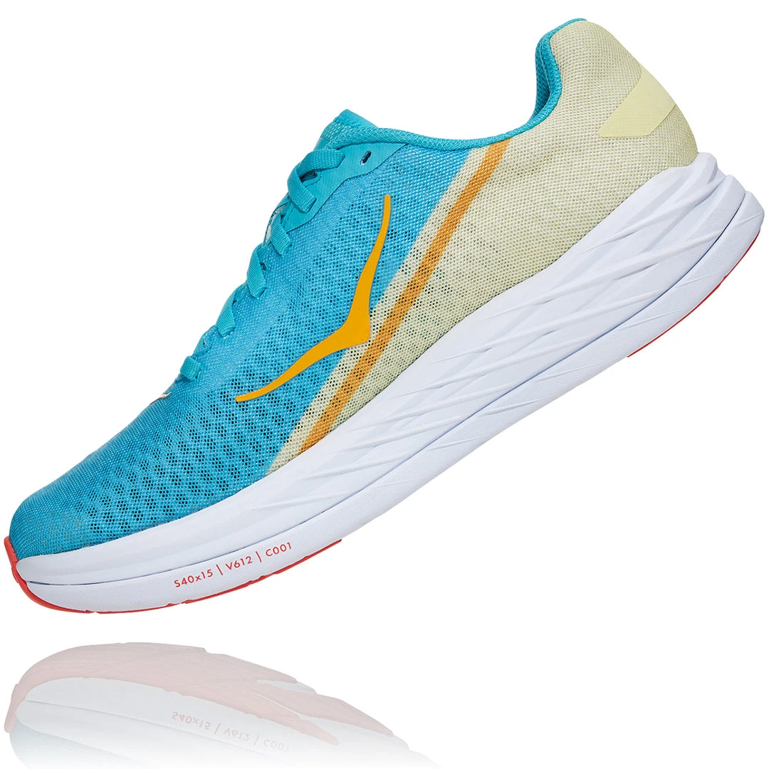 One of the most energetic shoes HOKA has launched to date, the Rocket X is an incredibly lightweight, insanely responsive racer geared for elite athletes. The lightest racing flat in the HOKA lineup, this all-speed shoe is engineered to launch off the line. Primed for shorter distances, the Rocket X utilizes the same responsive carbon fiber plate as the Carbon X, delivering a fast, efficient and propulsive ride. Built for race day, this speed dagger employs the lightest foam in HOKA history, a soft