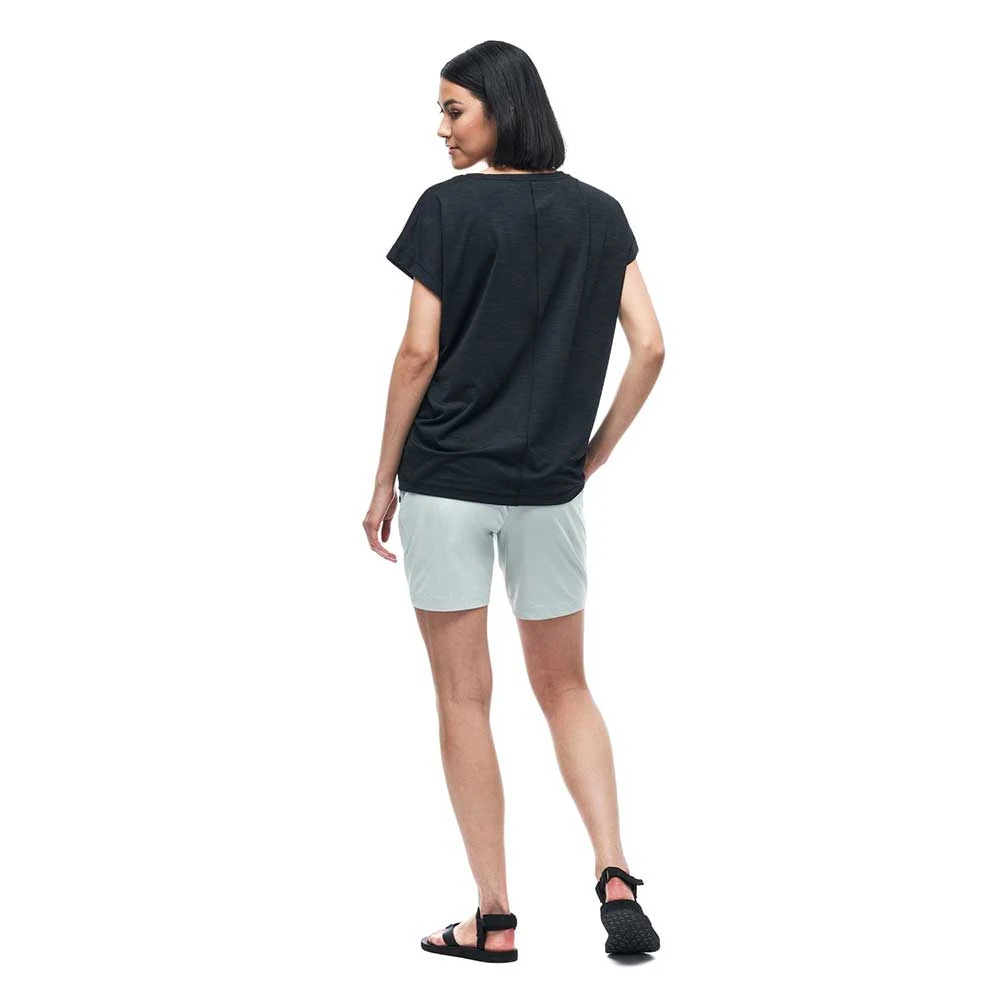 The LIV t-shirt is made of Quick Dry Knit, a light mesh fabric with a Polygiene® finish. Polygiene permanent odor control stops growth of odor-causing bacteria on fabrics, so you can wear more and wash less. The LIV t-shirt also has a UPF rating 30+. With its kimono sleeves, be both fashionable and ready for the adventure ahead! These features make this shirt versatile, great for travel and various outdoor activities.