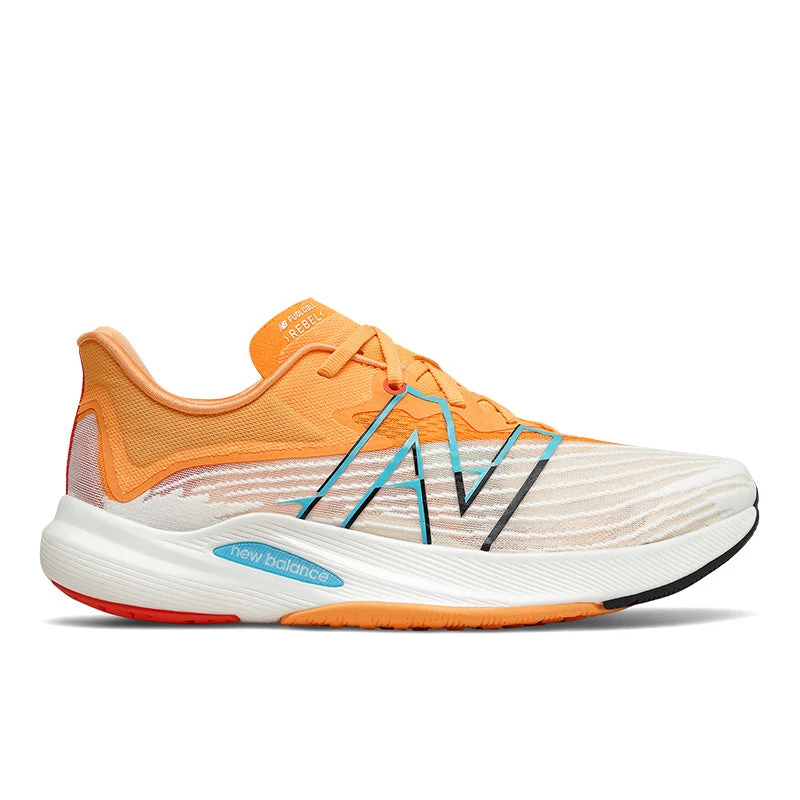 The New Balance FuelCell Rebel v2 seeks to help you better your best with its ultra-responsive feel. This bold men’s running shoe features a high-rebound FuelCell midsole to help provide explosive energy return in every step, with a silky smooth underfoot transition. For extra support, the shoe includes a deconstructed heel and a molded collar foam for lockdown. The breathable mesh upper is styled with bold branding and asymmetrical color blocking.