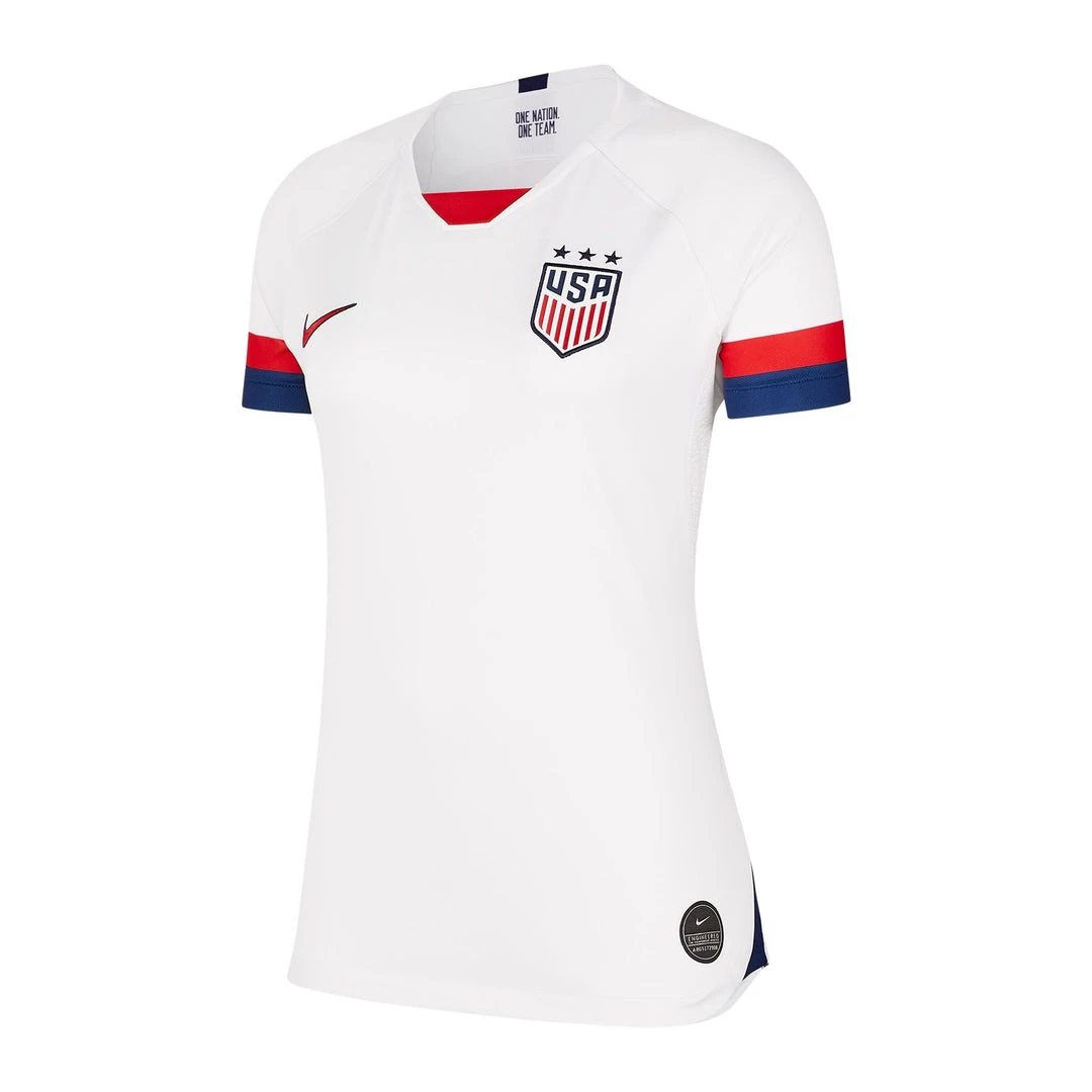 The U.S. Stadium 2019 (Mallory Pugh) Home Jersey features team details on highly breathable fabric to help keep you cool and dry on the field or in the stands cheering for your team.