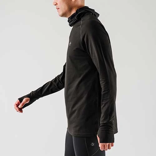 Versatility is in the details. Be warm and stay toasty while having options of thumbholes, a secure hood, and built-in turtleneck that can be pulled high over nose and mouth, keeping you protected from whatever the weather throws your way. The cocoon features Polartec’s Power Wool. The idea behind it is to put 100% of the merino where you want it and solve for some of the weaknesses of merino by putting a synthetic on the outside. The cocoon offers wind-resistant properties to keep you warm on those cold and blustery days.