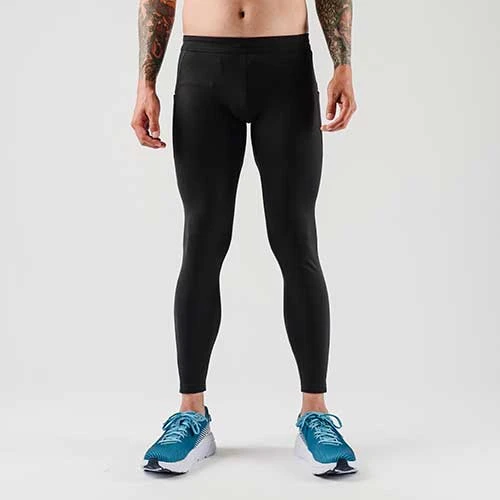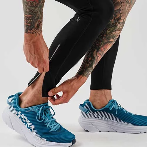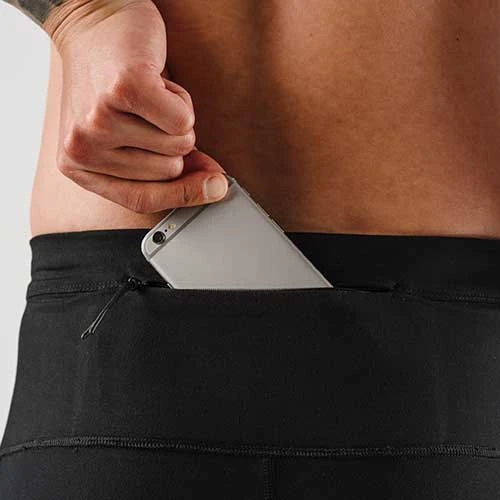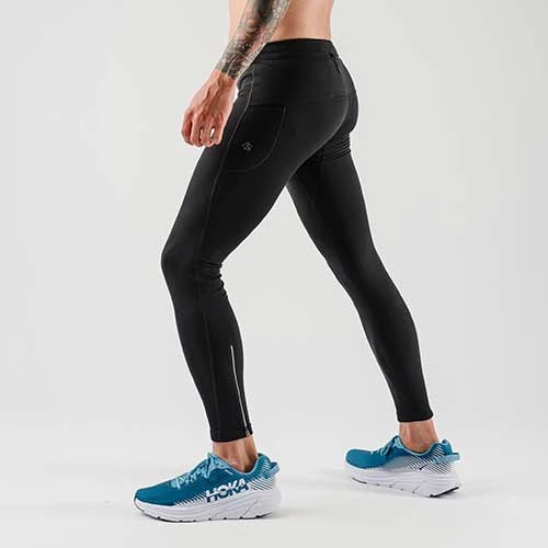 Finally a men’s fleece tight with pockets galore. Keep legs warm on cold days. Internal drawcord provides a secure fit. Features two hip stash pockets and back center zip pocket all large enough to fit most phones. Reflective seams for high visibility. Ankle zippers for easy on/off. Made with 76% polyester and 24% spandex.