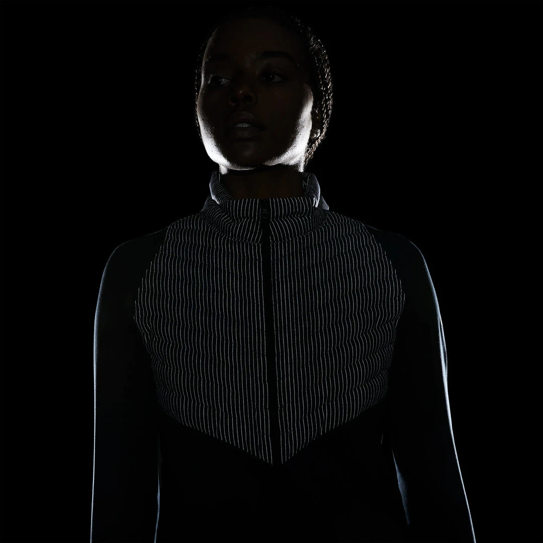 Conquer your cold-weather route with the Nike Therma-FIT Run Division Jacket. Its hybrid design doubles as an insulated jacket and a comfortable midlayer with mesh-lined venting at the back for more airflow. We’ve added reflective details to help you feel more comfortable on the go. This product is made with at least 50% recycled polyester fibers.